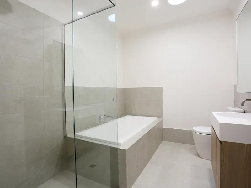 - 1 modern bathroom with sleek fixtures