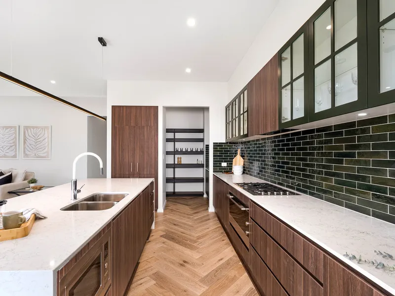 + Chef's kitchen with high-end appliances, spacious island, soft-close cabinetry, butler's pantry, integrated fridge and dishwasher