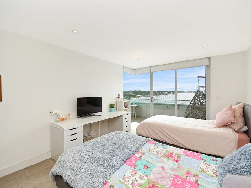 - Bright open plan living and dining area flowing to a private balcony