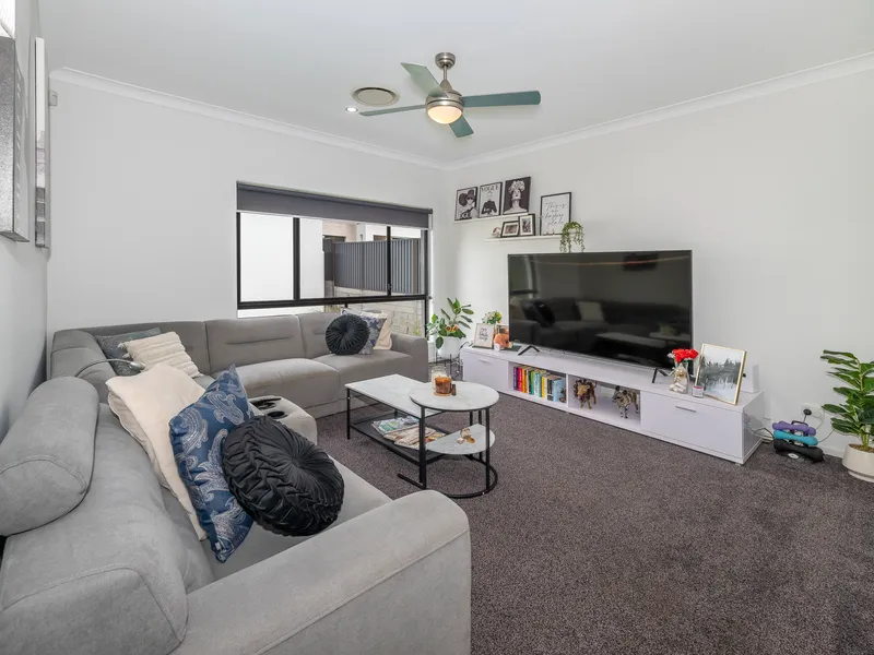 - Multiple living areas: open-plan kitchen/dining/lounge, separate carpeted media room, upstairs retreat, and study/home office