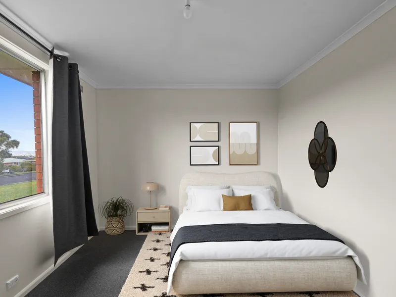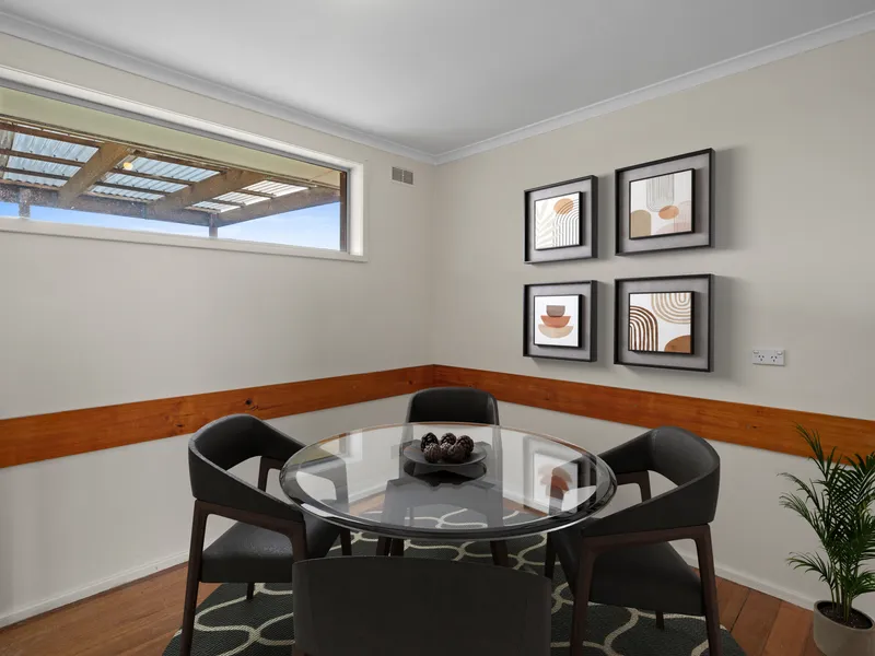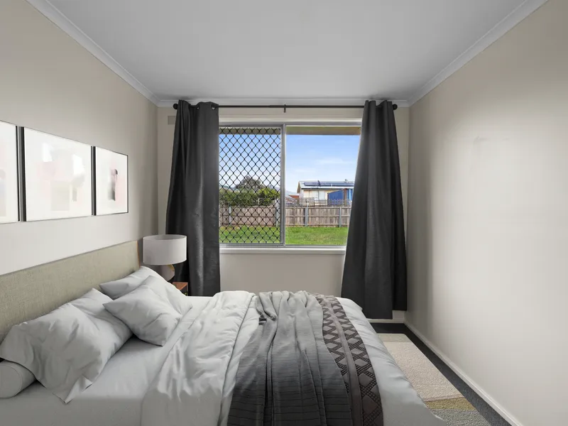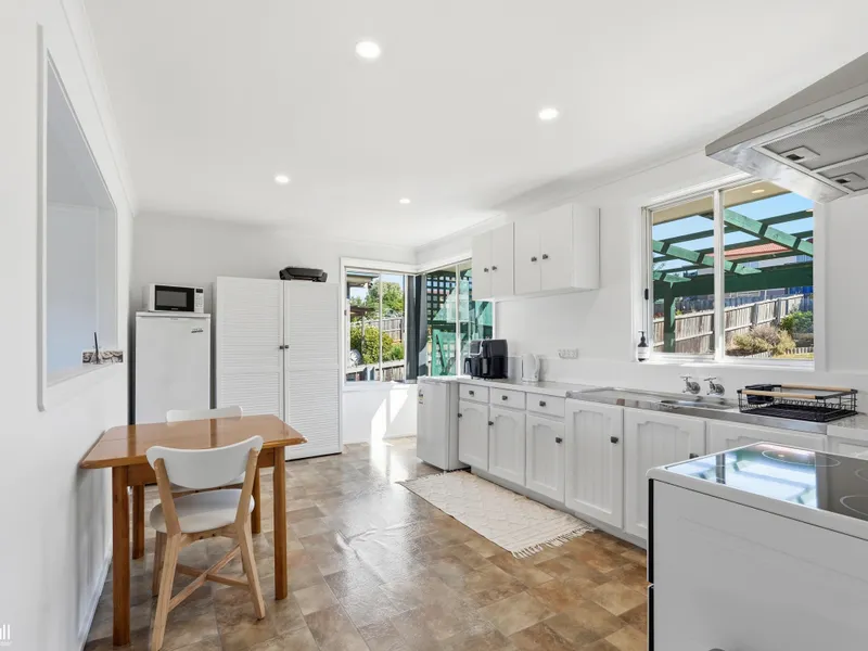 Inside, you’ll find three bedrooms and a central bathroom with a separate toilet for convenience. The single living area is light-filled and adaptable for lounge and dining arrangements, creating a relaxed, functional space.