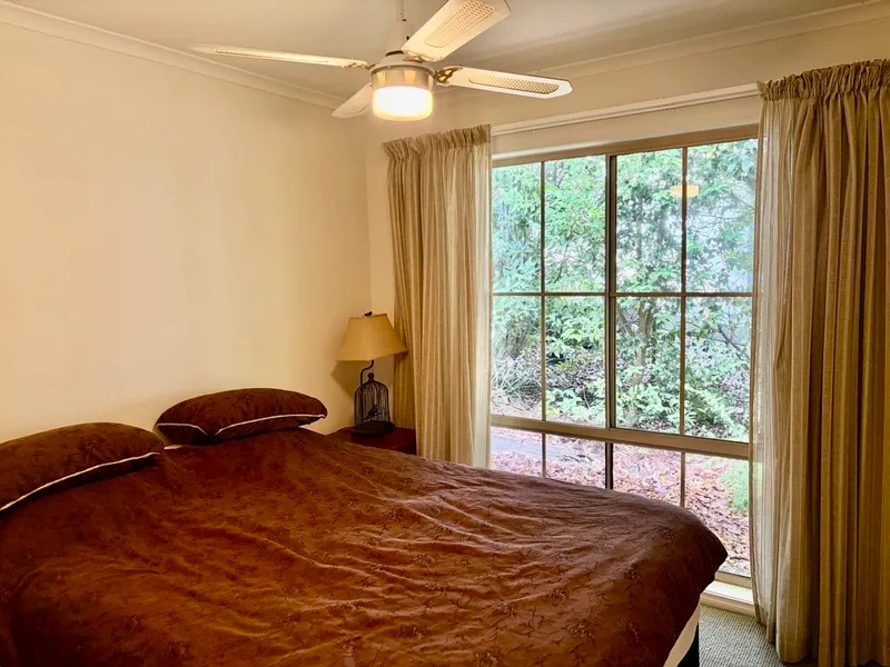 All bedrooms include built-in robes, with ceiling fans in the master bedroom and second bedroom for added comfort. Sliding doors open from the master bedroom out to a lovely deck overlooking trees and natural scenery-perfect for relaxing or entertaining.
