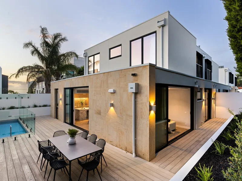 Welcome to this stunning home located in historic shopping precinct Bay St Brighton. This freshly furnished, stylish retreat offers bright open-plan living that seamlessly connects to a fully equipped sleek kitchen, a dining space for six, and a lounge with 3-seat sofa bed, designer accent chair and wall-mounted TV, all opening onto a serene private green backyard — perfect for both comfortable living and entertaining.