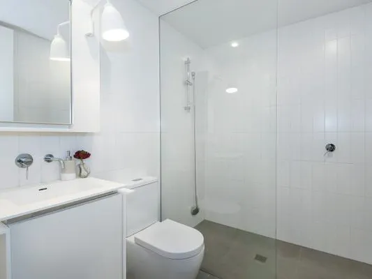 • Sparkling modern bathrooms are elegantly finished with contemporary fixtures and stylish matte finished pendant lighting, creating a refined and relaxing atmosphere while maintaining a clean and functional layout for everyday convenience.