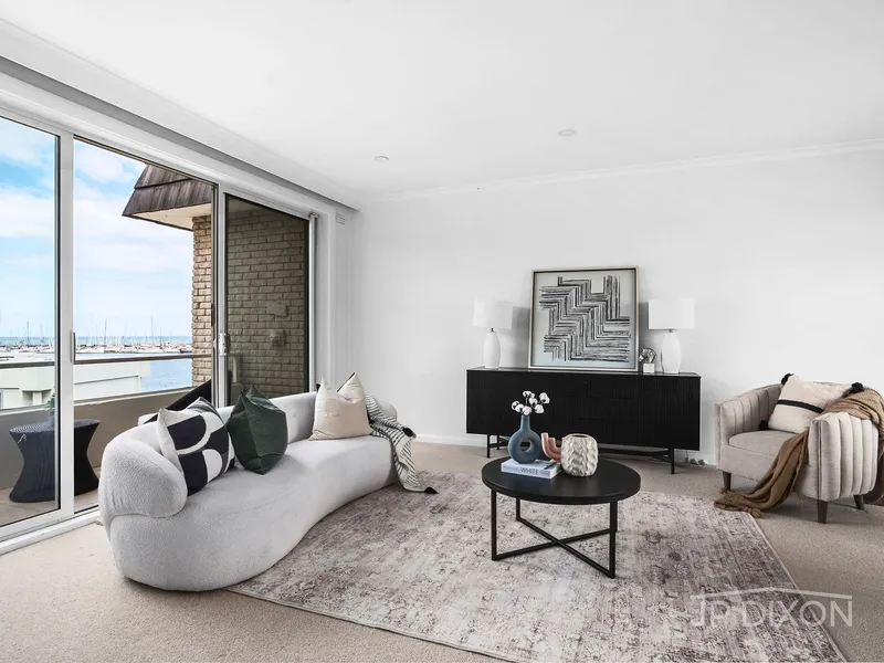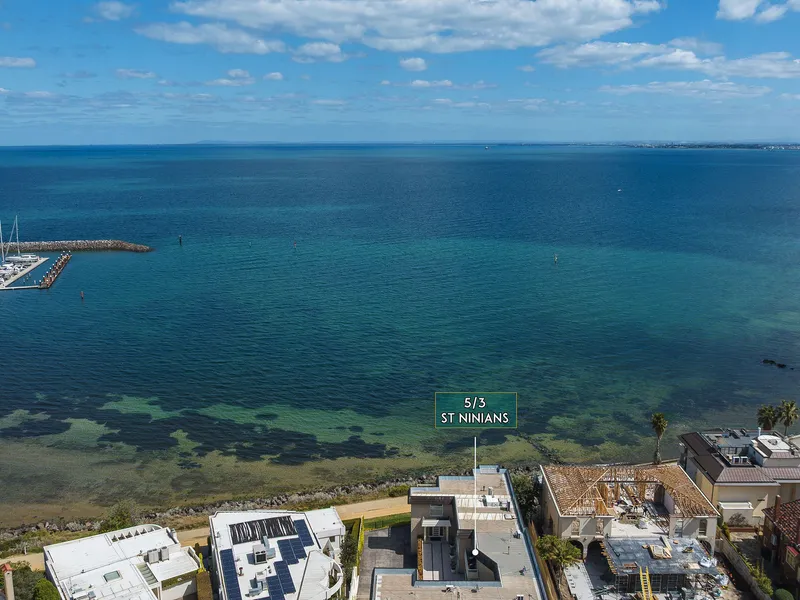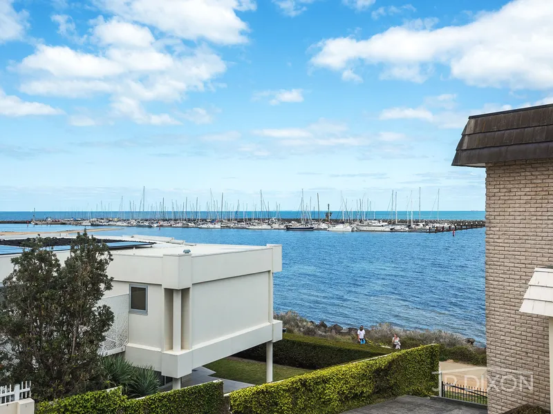 Positioned on Brighton’s prestigious Golden Mile, this refurbished two-bedroom double-storey apartment offers an exceptional beachfront lifestyle with uninterrupted views across the yachts and waters of Port Phillip Bay.