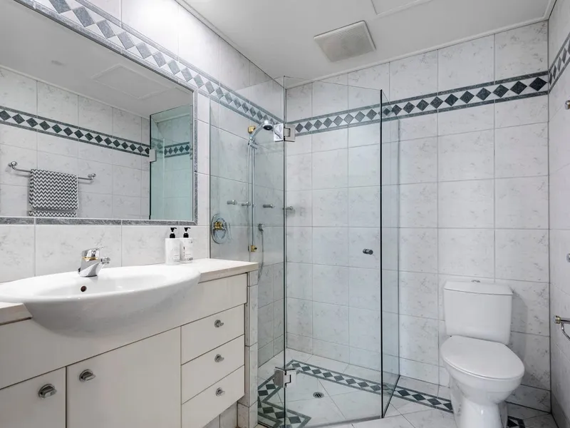 Designed for comfort and effortless elegance, the apartment features a generous master retreat complete with two walk-in robes and a private ensuite, while the second bedroom includes built-in robes and its own bathroom ideal for guests or shared living. A powder room adds further convenience.