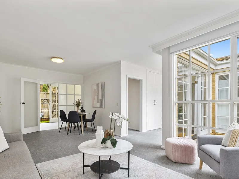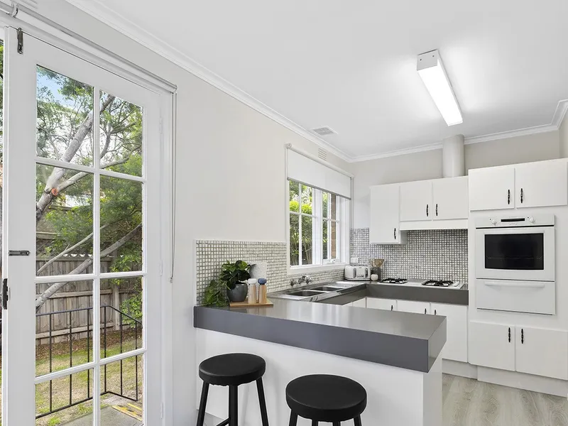 Sunny two bedroom villa this home is one of four in the block and is peacefully set within metres of cafes, boutiques and city-bound transport with an exceptional light-filled interior that is sure to inspire. Stylishly neutral, a pristine kitchen and meals domain flows through to the living and formal dining areas that look out upon a leafy front garden, whilst each of the bedrooms is appointed with built-in robe storage. With an up-lifting indoor-outdoor connection within a private full-width garden, split system heating and air conditioning to ensure year-round climatic comfort and an independently accessed lock-up tandem garage, it also includes a laundry, semi-ensuite bathroom and a separate WC. Walk easily to a first-class selection of fine cafes and dining within Church Street's village centre and the ease of Brighton Station nearby, or take a stroll to the beach to enjoy the spoils of summer living in a prominent beachside location. Inspect at advertised times or by appointment.
