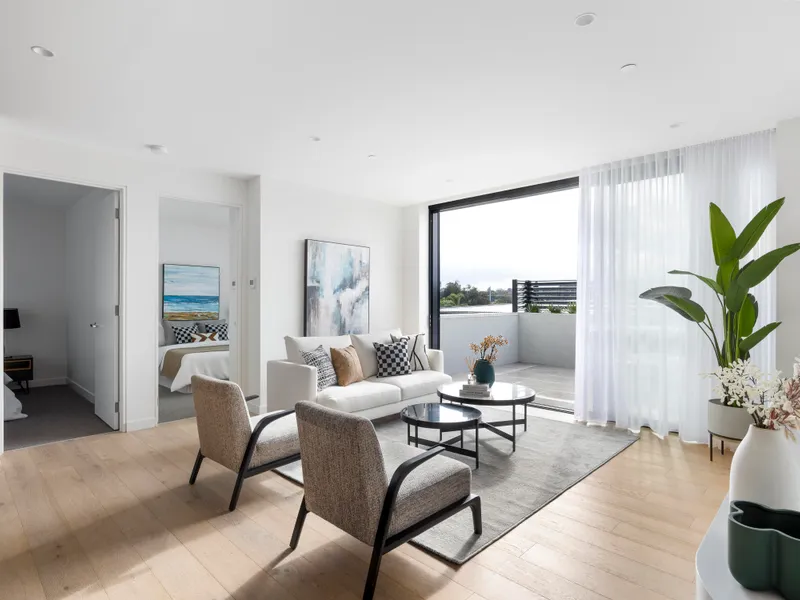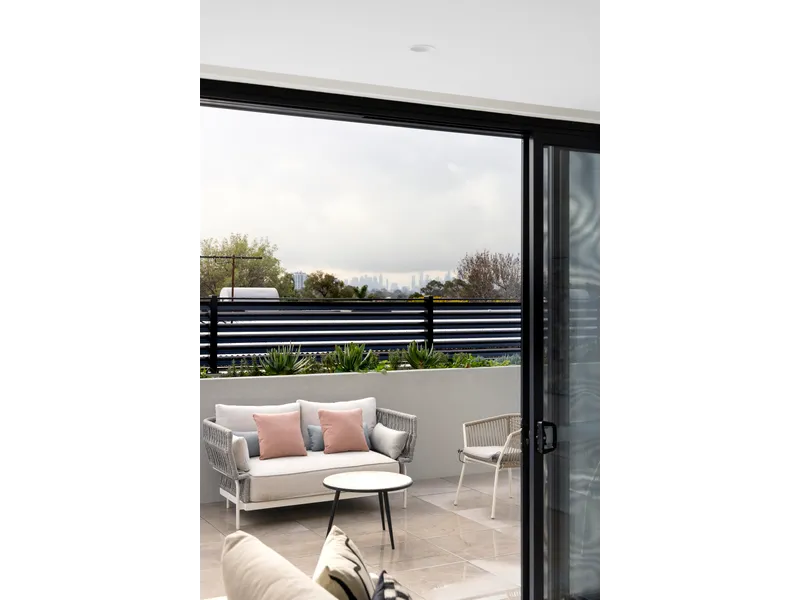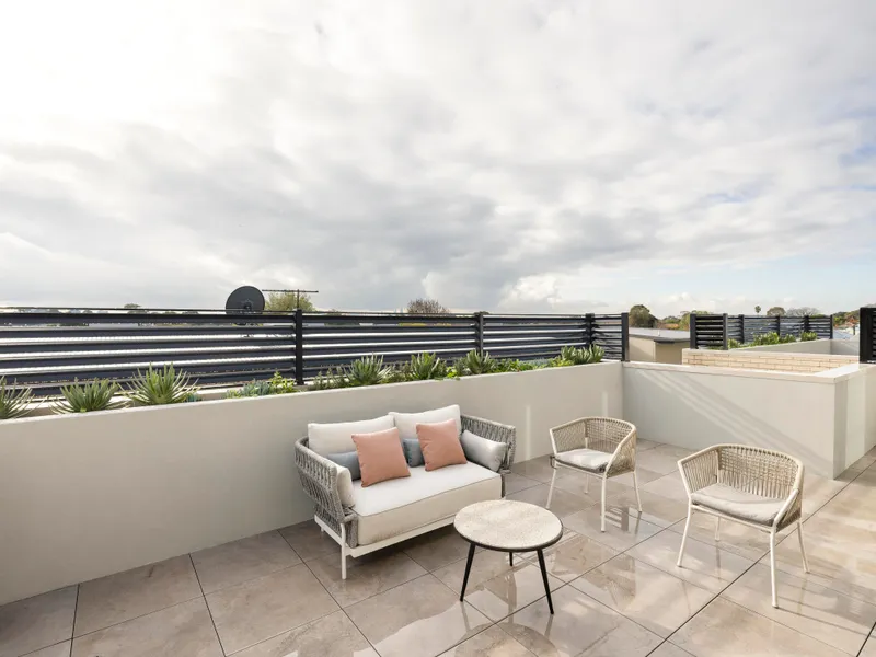 Experience refined coastal living in this serene three-bedroom, two-bathroom elevated security apartment, where sweeping city views and natural light create an atmosphere of calm sophistication. With its prized northern aspect, this stunning residence offers a perfect balance of privacy and vibrancy, positioned within North Brighton’s celebrated café culture and distinctive architectural streetscape.