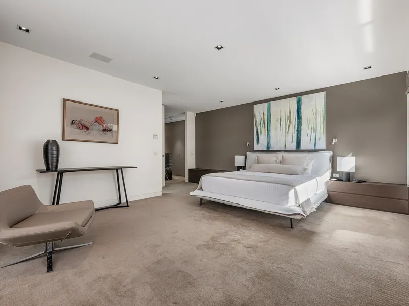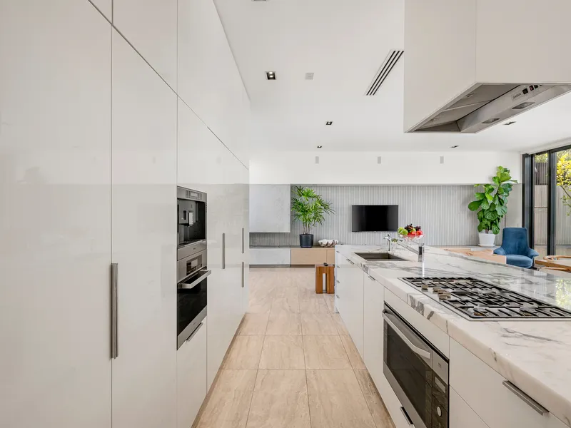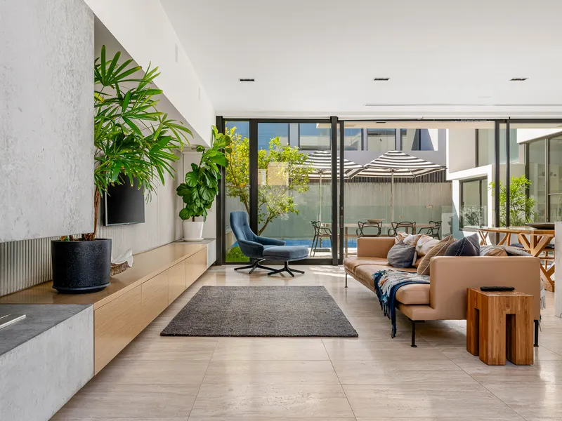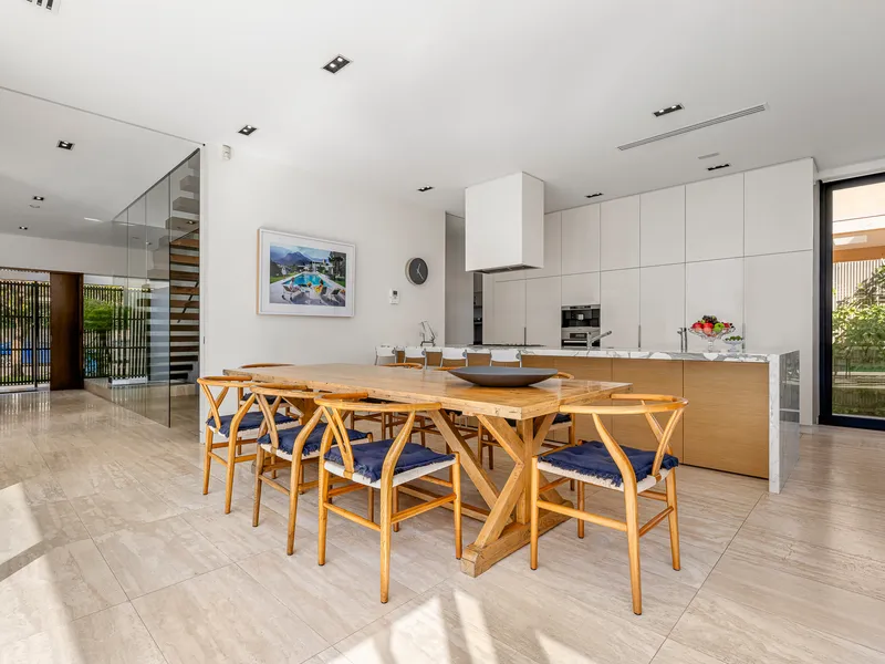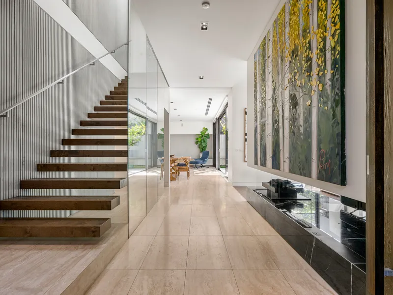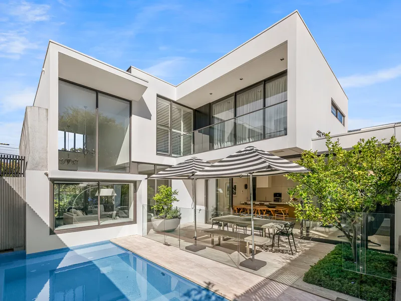 This three bedroom plus study is an architectural masterpiece that embodies luxury and quality in a prime location. This stunning residence, crafted by Simon Stokes Architects, is a testament to exquisite design and superior craftsmanship. Bathed in natural light through expansive windows and featuring creamy travertine floors, this home exudes elegance and sophistication.