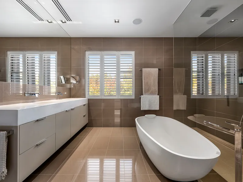 Comprising secure gated entry through to grand entrance hall with fluted concrete feature wall, oversized floating timber staircase with floor to ceiling glass panels, and a two-way gas fireplace surrounded by Maquino marble, this is truly an entry to be remembered. Opening onto the light filled formal living room with extensive built in storage, access to the private front courtyard garden and stunning windows overlooking the solar heated fully tiled pool.
