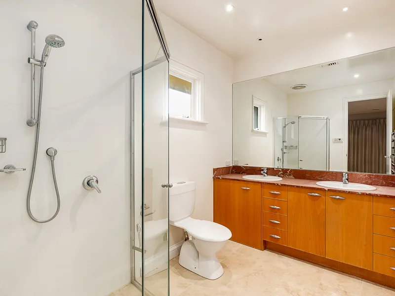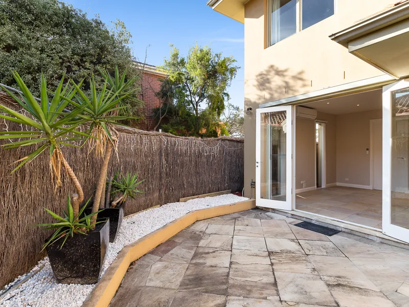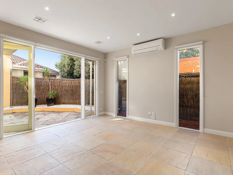 Distinctively detailed & wonderfully well-located, this 3 bedroom plus home-office, 2.5 bathroom town residence offers a sophisticated approach to life in central Brighton. Just off Bay St, a minute to Church St & a walk to the Golden Mile beachfront, this home designed by architect James Rigney showcases a dual living design graced with a gasfire-warmed lounge, a stone-floored casual zone with high-impact stone & Gaggenau kitchen curving into a semi-circular glass dining bay, & a sumptuous master-suite with marble-detailed dual vanity en-suite & WIR. Fronted by double garaging, backed by a courtyard & appointed with every prestige extra, this is the place for a glamorous life. Features: updated main bathroom, Gaggenau kitchen reverse cycle ducted air-con, intercom & alarm. Coveted New St/Bay St precinct location.