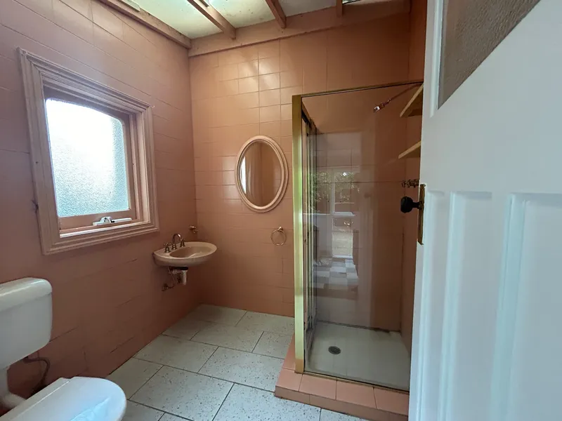 * Salmon toned bathroom (no bath), 2 WC'S.