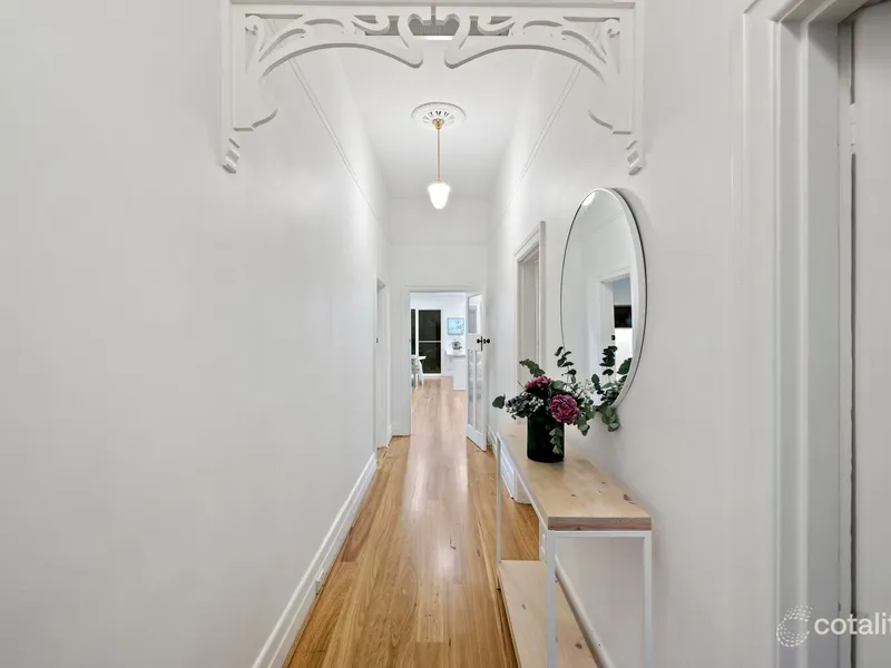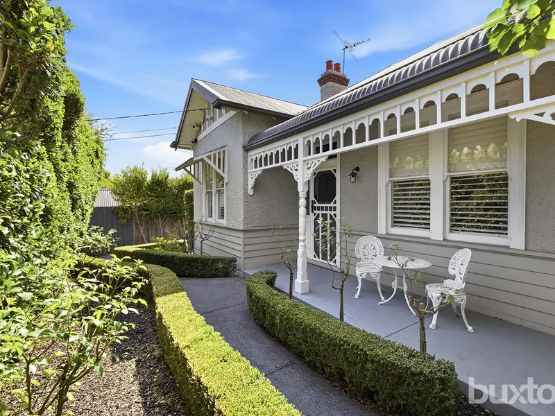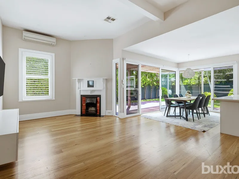 Bathed in natural light thanks to its prized northerly orientation, this beautifully renovated late Edwardian home seamlessly blends timeless character with contemporary comfort. Behind its charming period façade and manicured gardens, light-filled interiors unfold, offering an inviting and instantly liveable family residence.