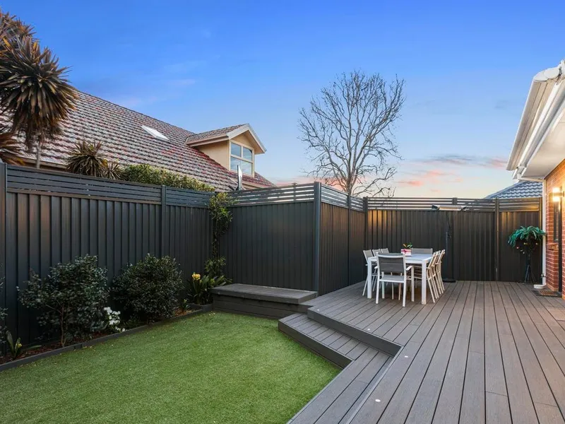 Glass doors open to a west facing courtyard designed for relaxed outdoor living, featuring composite decking, a café style awning for shade, low maintenance mod grass and a tranquil water feature. The home includes polished timber floors, ducted heating, refrigerated cooling, video intercom, security system, ducted vacuum, solar panels and excellent storage. A double automatic garage sits behind secure automated gates, providing easy and private access. Perfectly positioned for convenient transport and lifestyle needs, the property is moments from the Hawthorn Road tram, North Road bus routes to Monash University and Elwood, and only a short walk to Ormond Station. Local favourites such as Sebby’s Scrolls, Landcox Park, Ormond Primary School and Brighton Secondary College are all within easy reach.