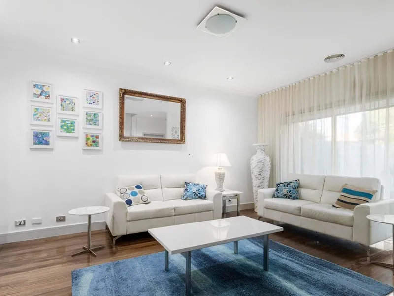 Tucked away in a peaceful pocket, this superbly designed three bedroom plus study town residence offers spacious, low maintenance living with an emphasis on comfort and style. Behind a secure and gated landscaped surround, the home opens to an inviting lounge flowing through to an expansive open plan living and dining zone. The kitchen has been beautifully updated with quality appliances including an Asko induction cooktop, dishwasher and Westinghouse oven & grill, providing an excellent workspace for everyday cooking or entertaining.