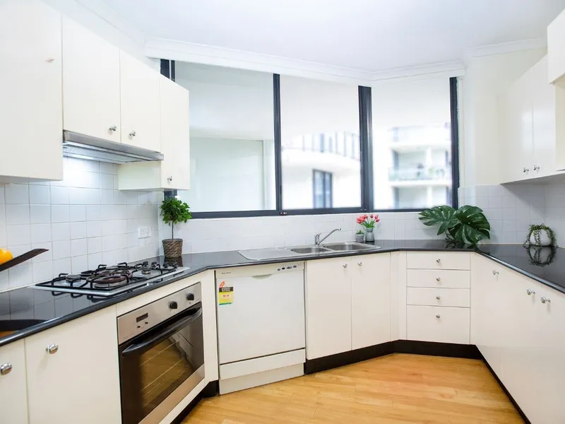 Set within a well-maintained building, the home features polished timber floors throughout and a stylish modern kitchen designed for both functionality and comfort. Light-filled interiors and a practical layout make this apartment ideal for easy coastal living.
