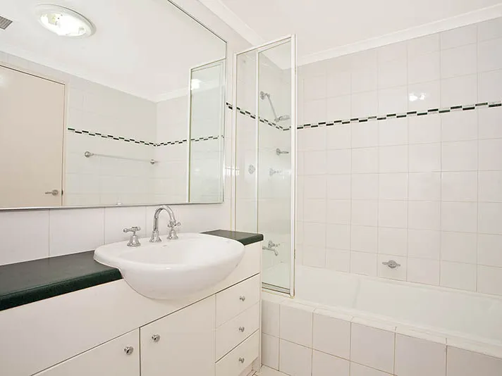 - Well-maintained bathroom with combined shower and bathtub