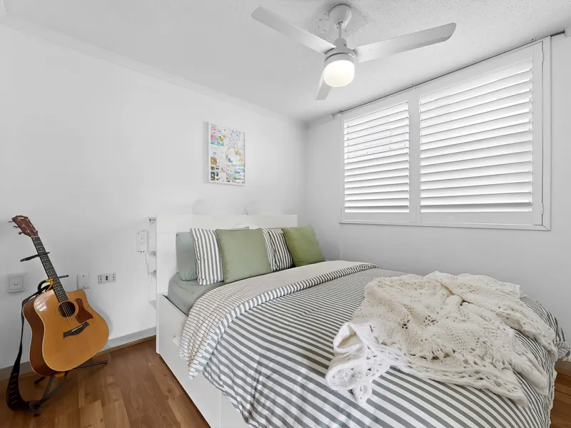 Inside, you'll find a light-filled open plan living and dining area complemented by warm timber flooring and a well-appointed kitchen. The spacious bedroom includes built-in storage and direct access to the bathroom, while the added convenience of an internal laundry enhances everyday living.
