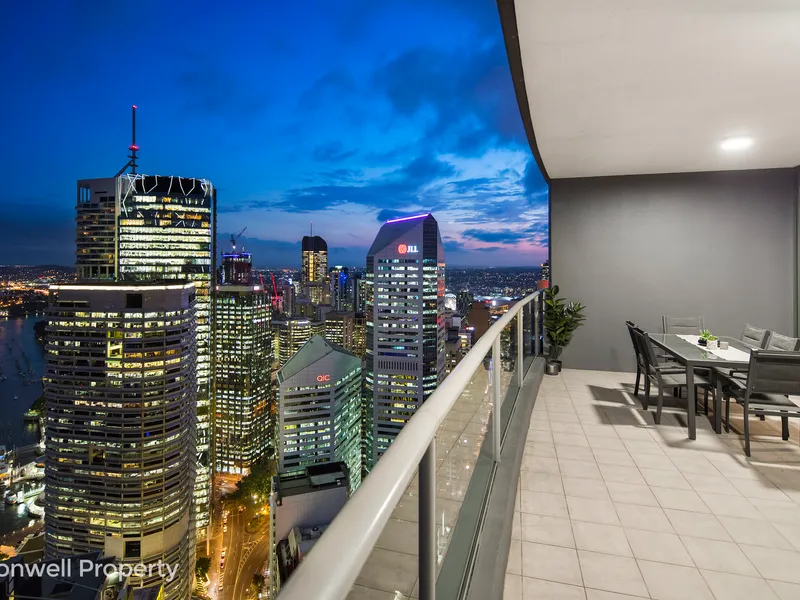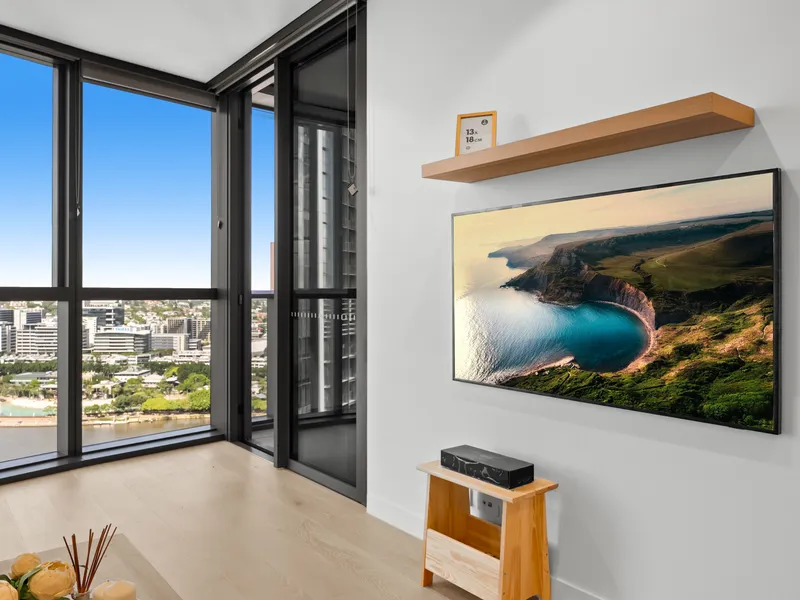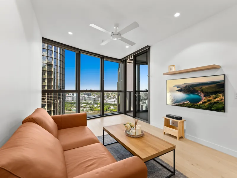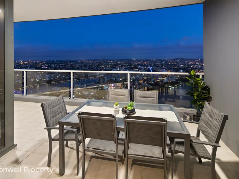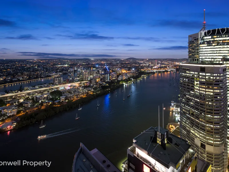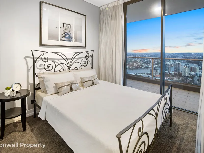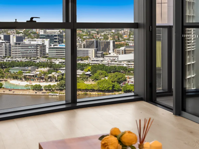 From the very moment you enter this stunning 2 bedroom, 2 bathroom apartment you know you are somewhere special. The extra high ceilings allow the full-length glass sliding doors and windows to capture the stunning long and wide views of the Brisbane City Skyline and River from the Southbank Wheel to the Gateway Bridge and beyond.