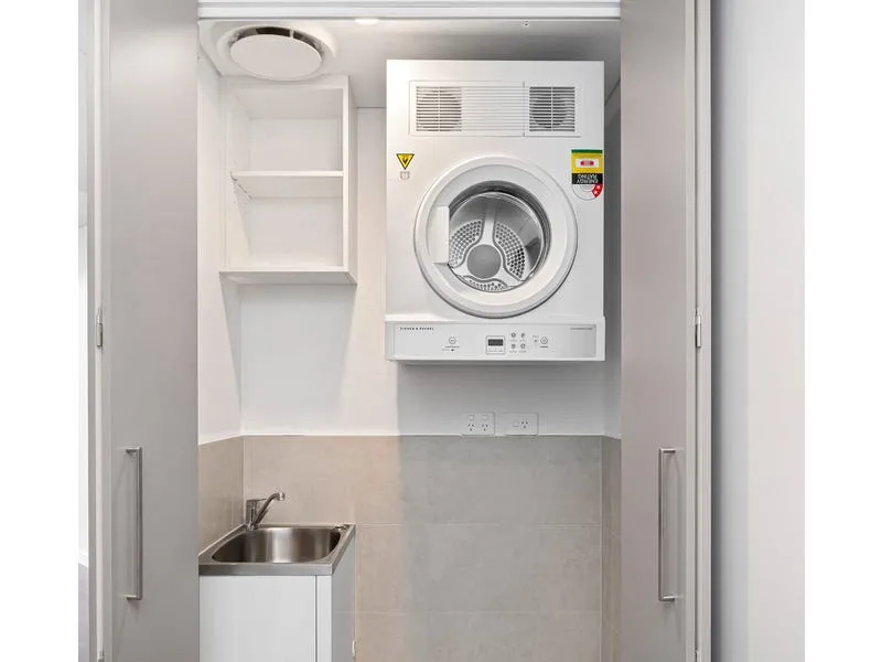 - Hide away laundry area, completed with dryer