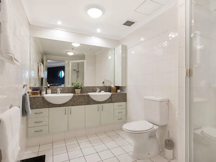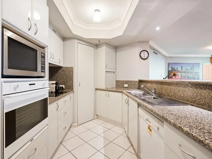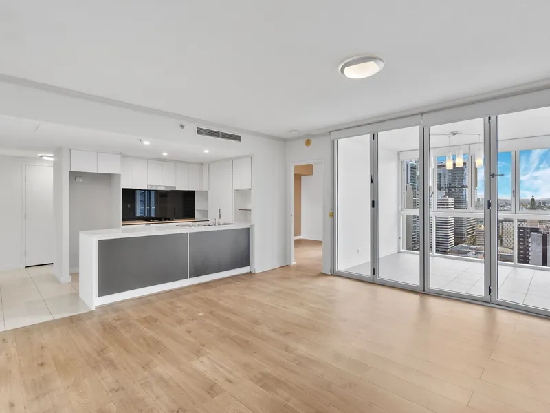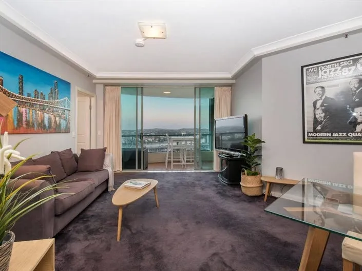 This spacious 2-bedroom, 2-bathroom apartment is cleverly designed to capture sweeping views from every room, as far as the eye can see, from the sand dunes of Moreton Island to the glistening lights of the city and beyond.