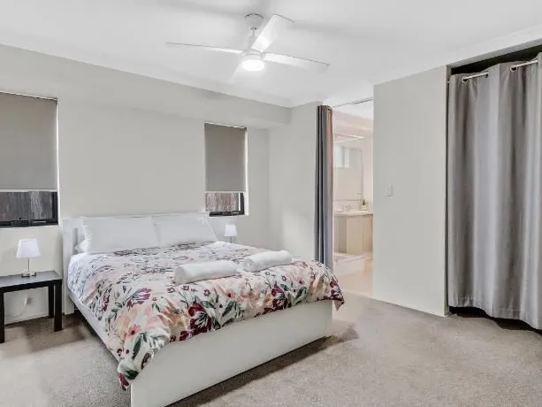 It is the rare occasion that a home like this comes to the market. This well-appointed fully furnished property is available now for lease. Located in Cape View Estate Broadwater you will be able to enjoy resort style living all year round. This complex is only a hop, skip and a jump to the beach. The home itself is tastefully decorated with the main room being upstairs with its only ensuite, downstairs offers a comfortable lounge area, dining and kitchen with the minor rooms. Plantation shutters throughout keep the resort feeling. This home will not disappoint.