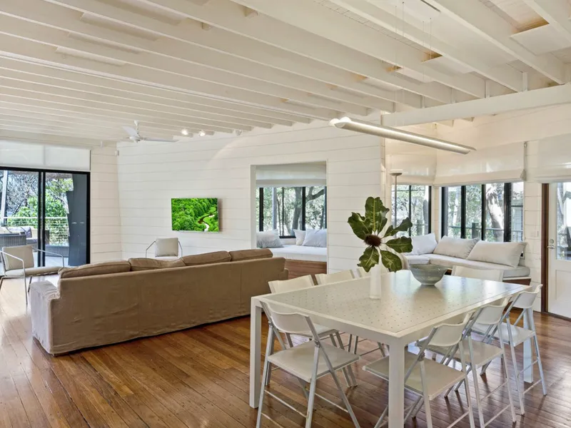Architecturally designed with inspiration drawn from the surrounding marine environment, the residence blends natural materials, organic forms and expansive glass to create a home that feels deeply connected to its coastal setting. Hardwood timber floors run throughout the home, while the open-plan living spaces are flooded with natural light and flow effortlessly onto a generous outdoor terrace designed for relaxed beachfront entertaining.