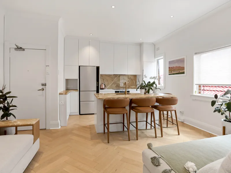 Bright renovated studio apartment designed to maximise comfort and space, this stylish retreat offers a seamless open-plan layout featuring custom joinery, a foldaway Murphy bed, built-in lounge seating, dedicated dining space, and a sleek, fully equipped kitchen. Located just minutes from Bronte Beach, cafés, coastal walks and transport, this apartment delivers the ultimate beach side lifestyle.