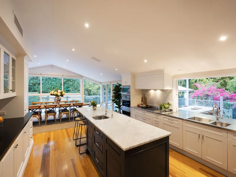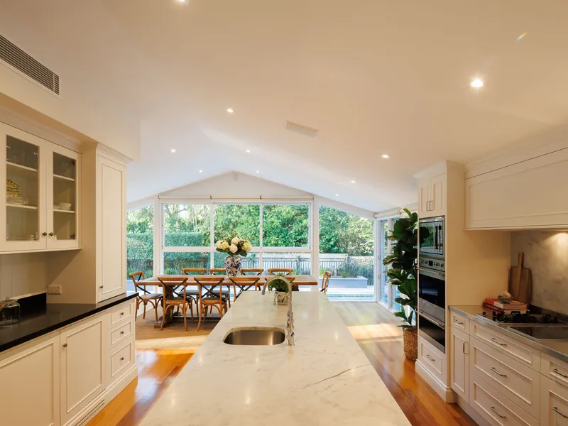 • Traditionally styled Wyre + Craw kitchen with marble benchtops and European appliances