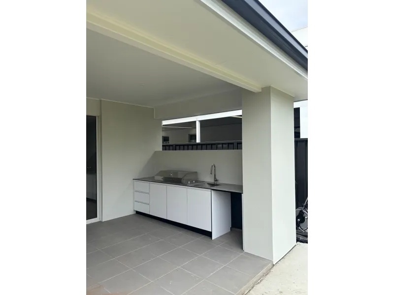 This beautifully newly built home is located perfectly between the City and the Sea. The Hamptons style inspired home features 4 generous bedrooms including 2 master bedrooms with walk-in robes and ensuites. Bedrooms 2 and 3 include full-height built-in wardrobes, while all bedrooms are complemented by fresh plush carpet. The heart of the home is the expansive open-plan kitchen, dining, and living area. With a striking stone island bench, quality stainless steel appliances, and a walk-in butler’s pantry with a separate sink and abundant storage, it’s ideal for both everyday living and entertaining.