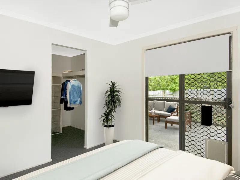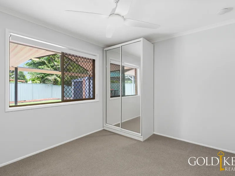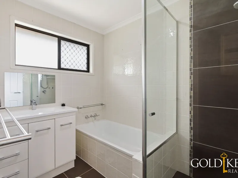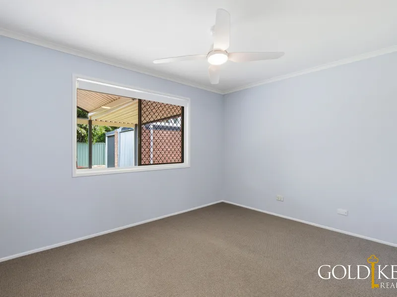 There are 3 freshly painted bedrooms with new blinds, security screens, wardrobes, fans and carpet. The master bedroom features floorboards, air-conditioning and a walk-through robe and ensuite. The main bathroom has a bathtub, shower and separate toilet.