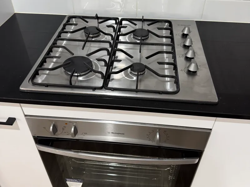 The well-appointed kitchen has plenty of natural light, skylight, cupboards with soft close doors, benchtops, stainless steel dishwasher, electric induction cooktop, oven and stainless-steel rangehood.