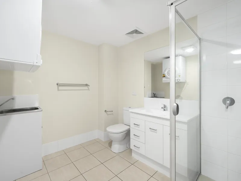 The bedroom is generously sized and includes a built-in robe, while the separate bathroom incorporates an internal laundry for added practicality. Completing the package is a single allocated car space, ensuring secure and convenient parking.