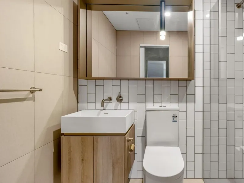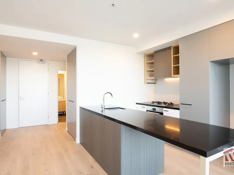 Three well-proportioned bedrooms with built-in robes are serviced by a luxurious fully tiled bathroom, with one bedroom offering direct balcony access. The main bedroom is complemented by a sleek ensuite and adjoining study nook.