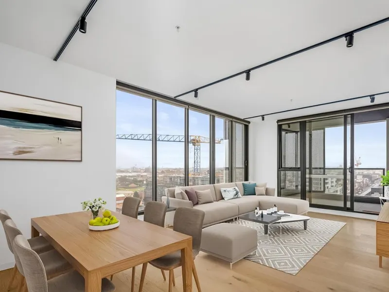 Favoured for its designer aesthetic, this chic three-bedroom plus study, two-bathroom apartment offers an exceptional standard of modern living. Positioned on the top floor of a boutique complex with a prized corner aspect, the light-filled open-plan layout is enhanced by abundant north-facing natural light, while a dedicated home office provides the ideal space for working from home.
