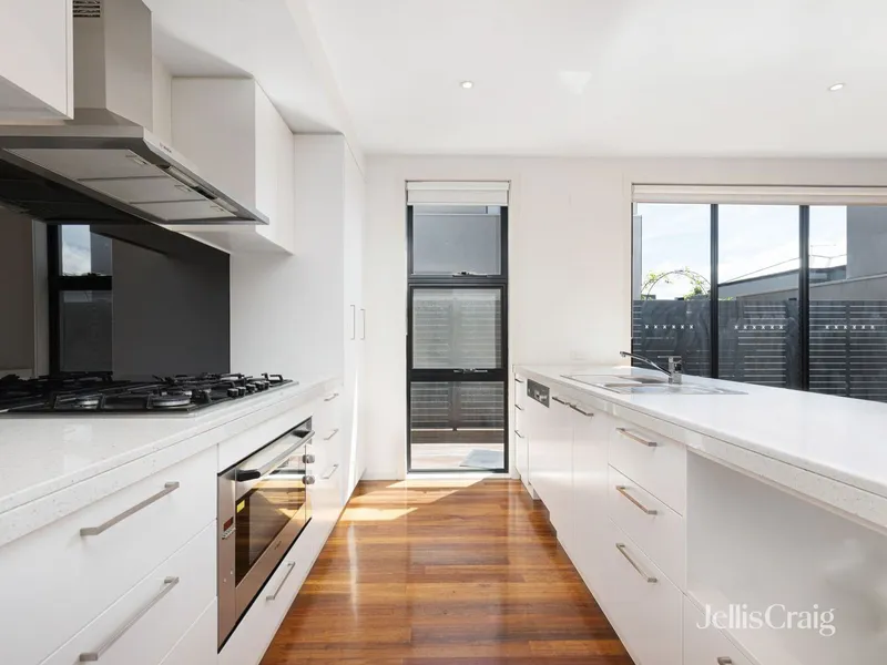 This townhouse features 3 bedrooms (Main with WIR through to full ensuite), bedrooms 2 & 3 with BIR's and a central bathroom, completed with a private balcony. Downstairs, you will enjoy the kitchen with Caesar stone bench tops, stainless steel appliances, and the open plan layout with lounge and dining areas. Other features include a remote control garage, split system air conditioning/heating & polished timber floors.