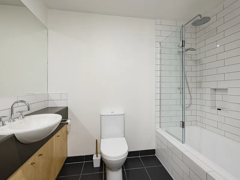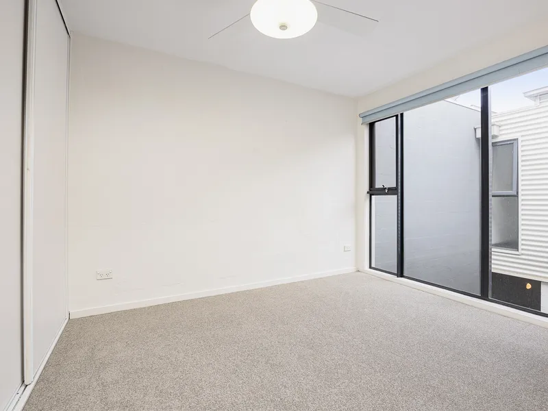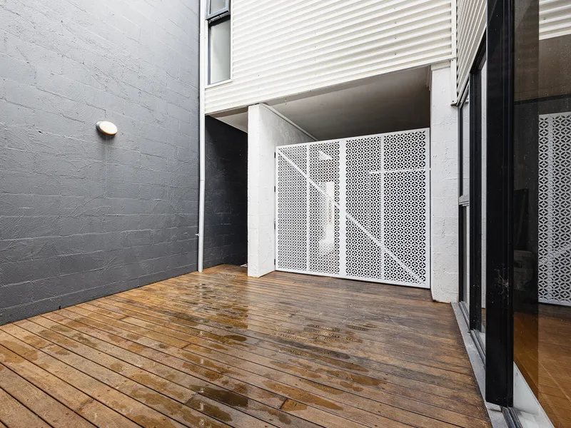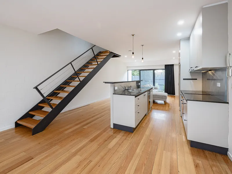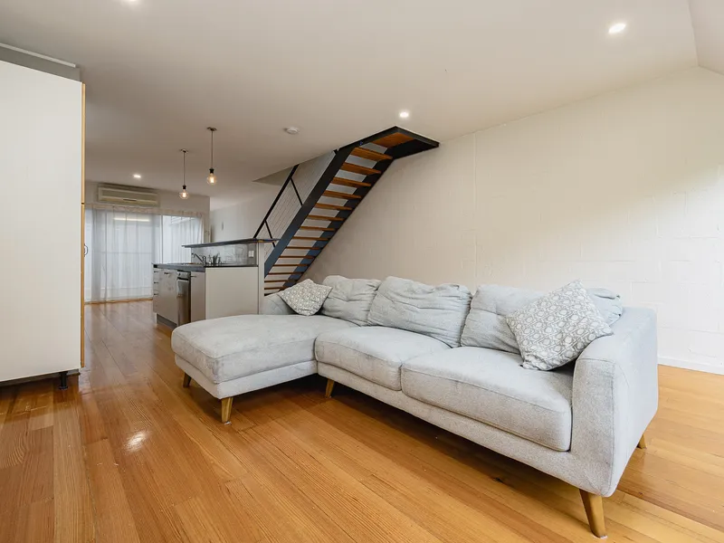 This expansive contemporary residence, set well back from the street and filled with northerly light, offers low-maintenance living bordering CERES, Merri Creek, the 96 tram route, East Brunswick cafes and located in the Northcote High School zone. Entered via a covered parking space and central deck area, the versatile floor plan comprises generous living and dining zones open to a well-equipped kitchen and northerly low-maintenance courtyard; large upper-level second living room or fourth bedroom and balcony; three double bedrooms with built in robes (walk-in wardrobe and ensuite to main); renovated central bathroom and separate euro laundry. This well-presented home features polished timber floors, brand new carpet throughout, an abundance of storage, additional off-street parking for one extra car, split-system air conditioning in every room and security entry.