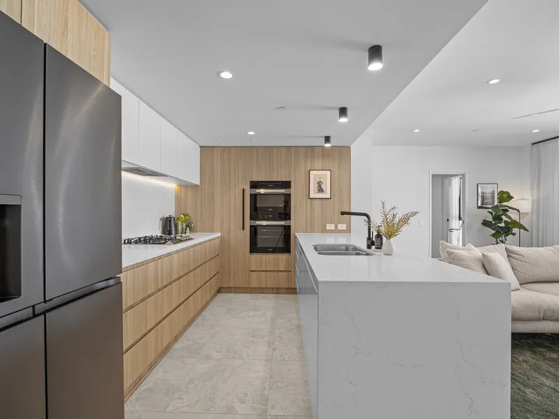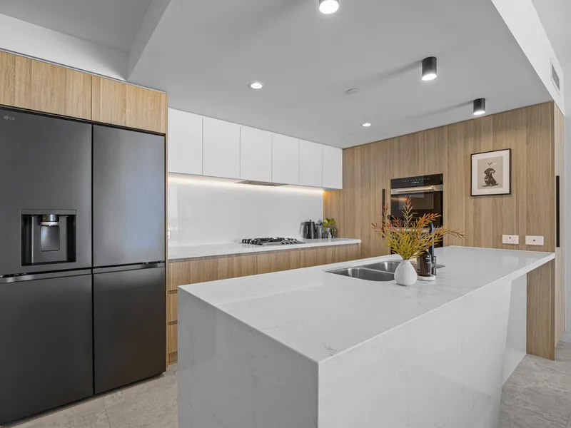 • Contemporary kitchen with stone benchtops and quality finishes