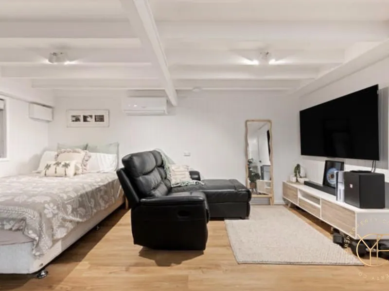 Downstairs, a separate multi-purpose room with kitchenette, ensuite and air conditioning provides excellent versatility for guests, a home office, teenage retreat or potential dual living.