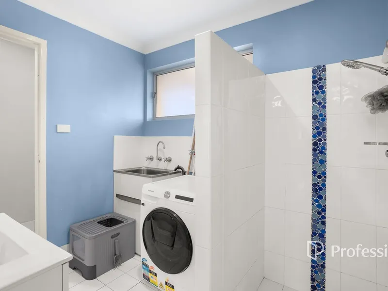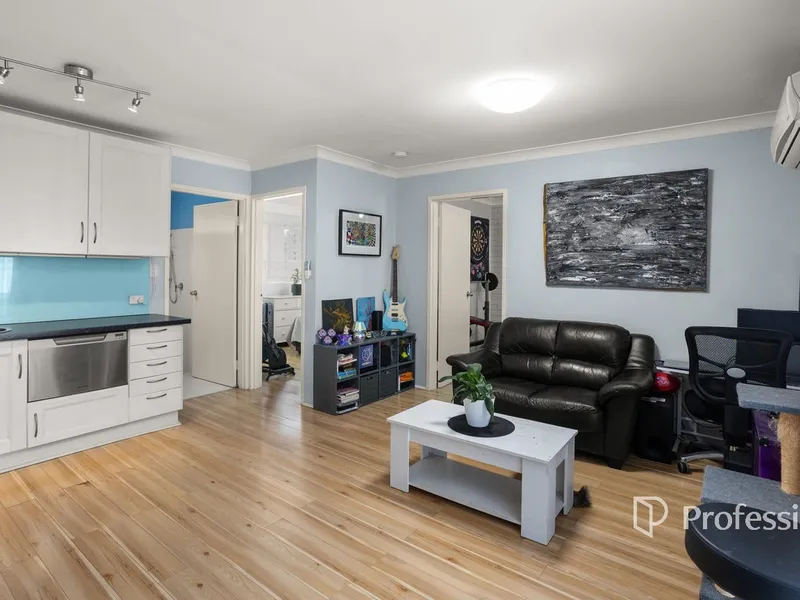 Inside, the home features a modern kitchen overlooking an open plan lounge and dining area, complete with reverse cycle air conditioning for year-round comfort. Both bedrooms are well-sized, and the updated combined bathroom and laundry is fresh and functional.