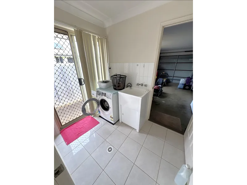 Internal laundry with ample space, clothesline located on side of the house.