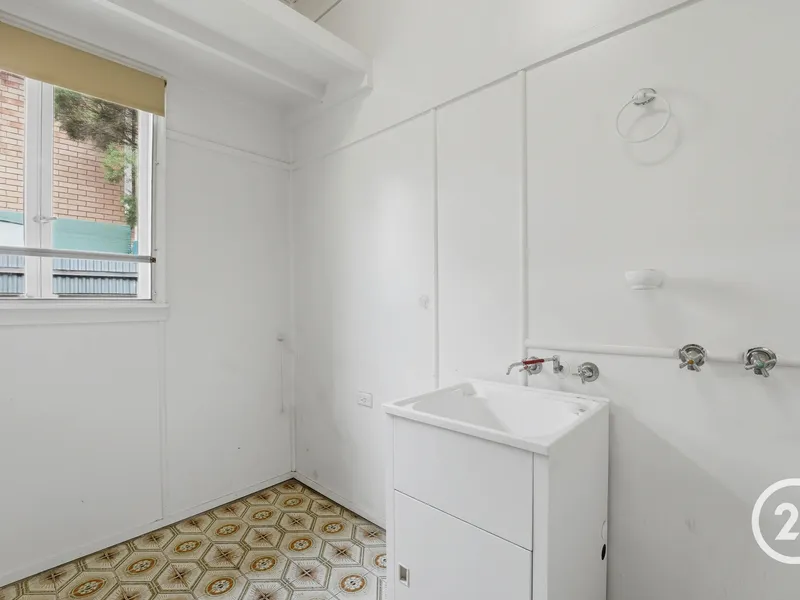 The centrally located bathroom retains its original terrazzo flooring and includes a shower over bathtub and vanity, with a separate toilet for convenience. An internal laundry adds to the practicality of the home. At the rear of the property you will find a covered rumpus/entertaining area with original 1960s tiles, overlooking the spacious backyard, there is plenty of room to enjoy the outdoor space. The property is complete with a single car garage with a remote-controlled tilt door.