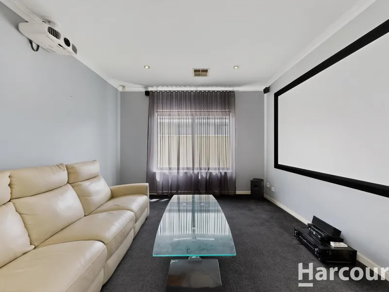 • Separate theatre room includes projector and large screen - perfect for movie nights