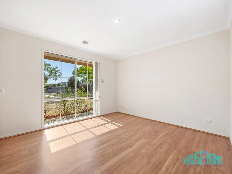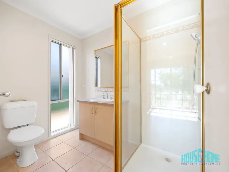 Accommodation includes three generous bedrooms, with the master suite featuring its own ensuite along with both a walk-in robe and additional built-in storage. The remaining bedrooms are fitted with built-in robes and are serviced by a central bathroom, complemented by a separate WC for added convenience. A large, separate laundry further enhances the home’s practical design.