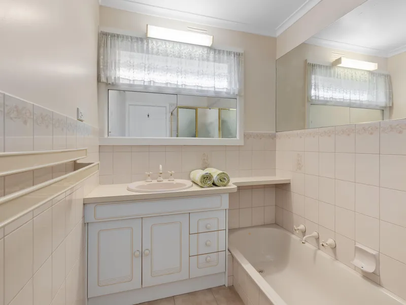 The home comprises three comfortable bedrooms, each with built-in robes, privately positioned along the hallway and serviced by a central bathroom with separate shower and bath.
