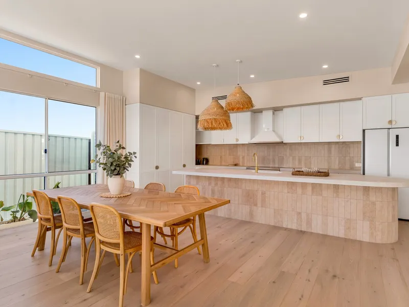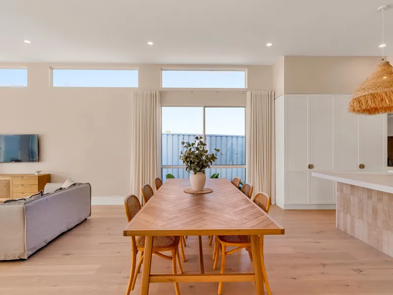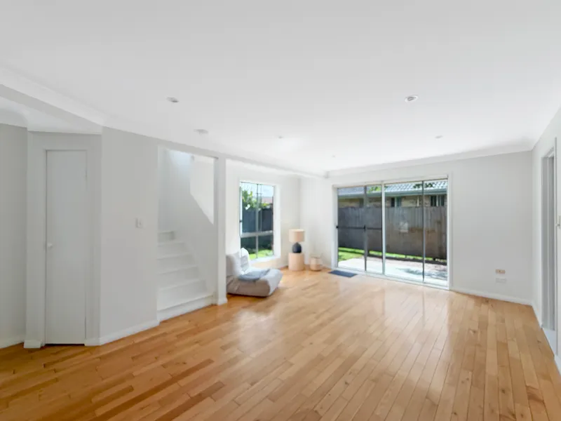 The lower level of the home features a spacious open plan layout with kitchen, dining and living. Sliding doors open out to a sunny courtyard and fully fenced backyard, creating a lovely indoor outdoor connection and a perfect space to relax and enjoy the sunshine. This level also includes a versatile bonus room, along with a laundry and a convenient second toilet.