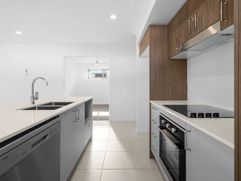 Modern Kitchen: Featuring sleek stone benchtops, stainless steel appliances, and plenty of storage for effortless meal prep.