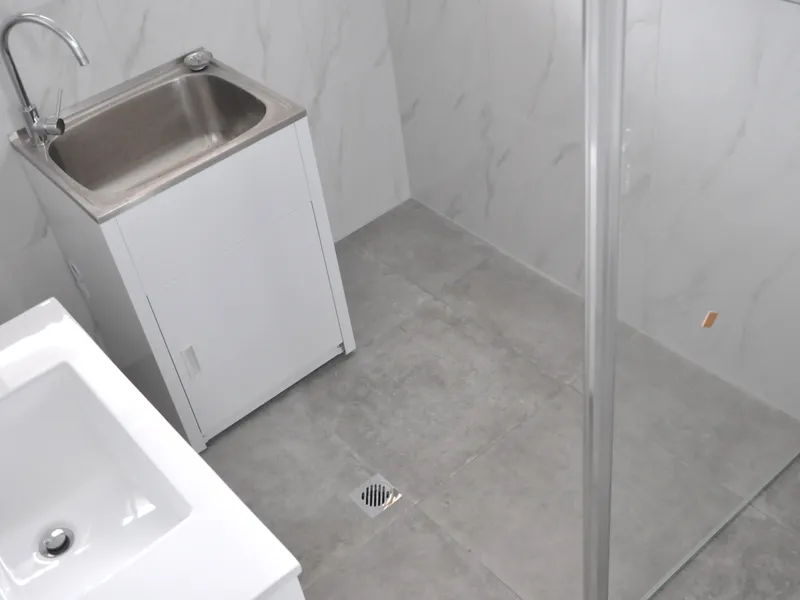 Renovated bathroom with laundry