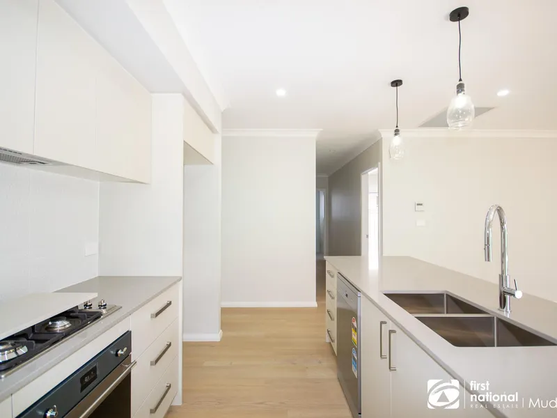 The heart of the home features a sleek contemporary kitchen with quality appliances, ample storage and generous bench space, flowing seamlessly into open-plan living and dining areas perfect for entertaining. The master suite includes a private ensuite and walk-in robe, while the remaining bedrooms are generously sized with built-in wardrobes.