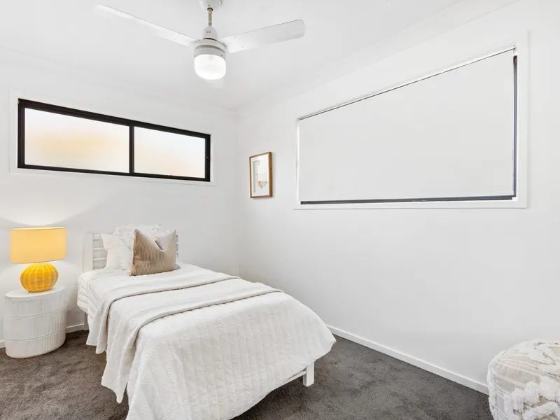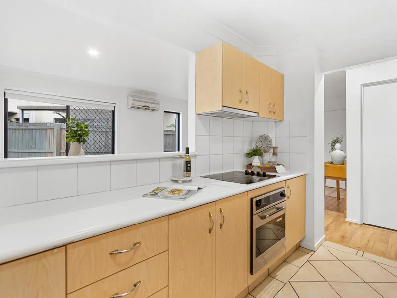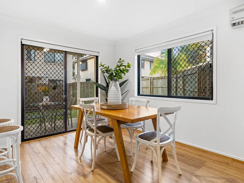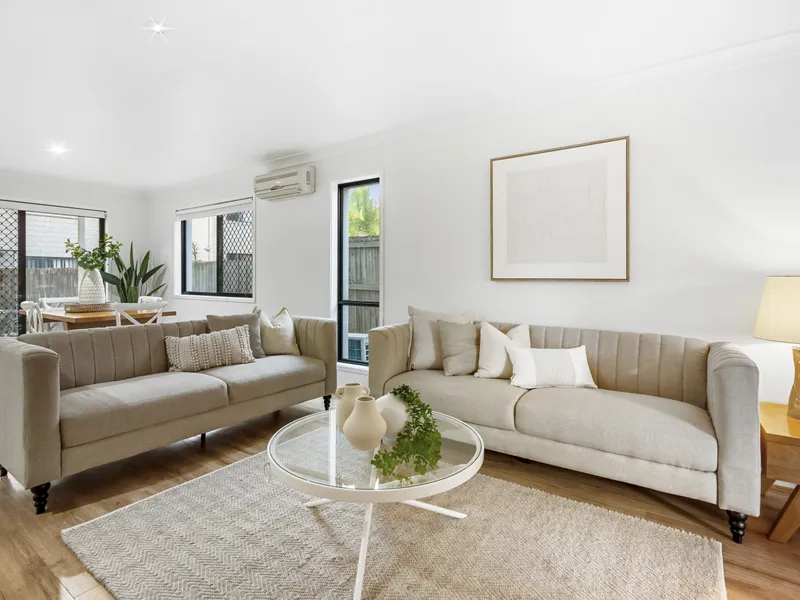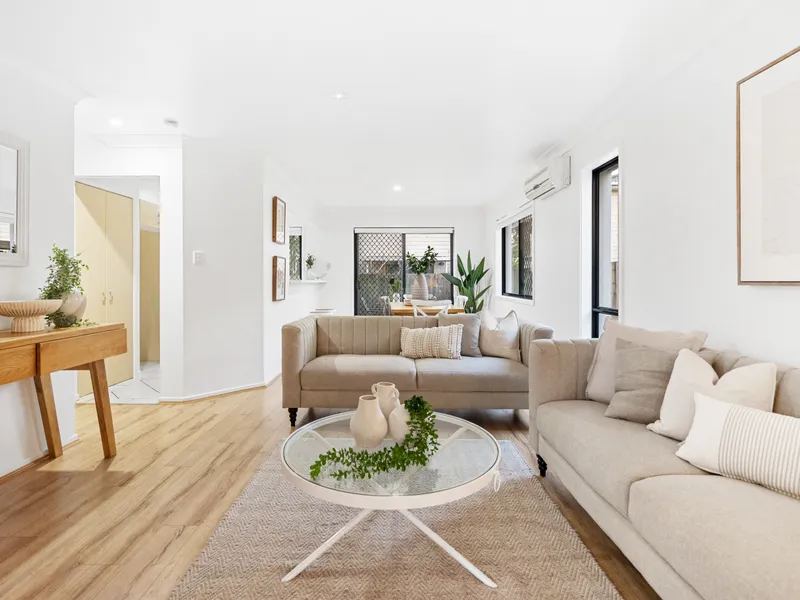 Step inside and be greeted by the warmth of timber floors that stretch from the front lounge to the rear dining area, perfectly complemented by freshly painted crisp white walls. The air-conditioned living space is ideal for year-round comfort, and the screened sliding doors at both ends provide excellent natural airflow.